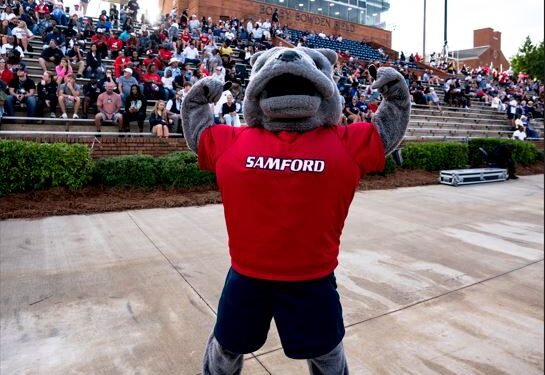 The goal of Sam this year is to assist the cheer team in all school spirit activities and give Samford a face to pair the University with athletics.