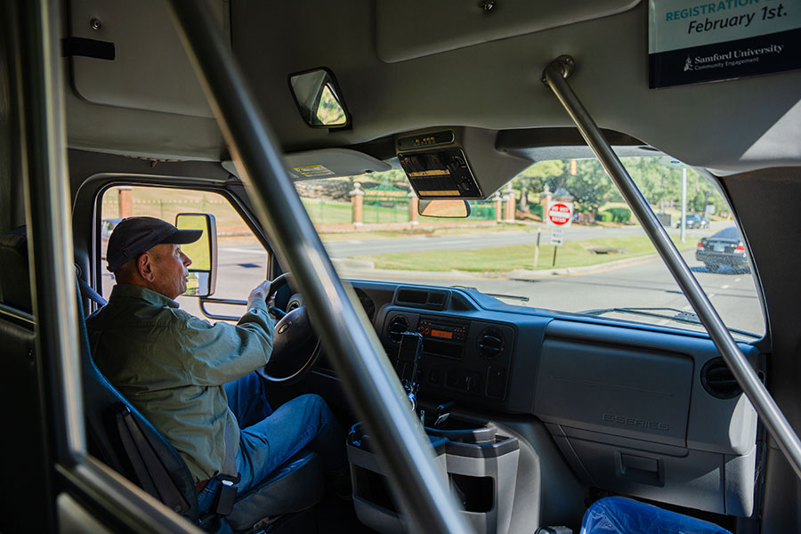 One of these drivers is Mac Barron, an undergraduate student attending Samford through the online program. Barron started working for Samford about a year ago, doing some work on campus part-time as well as occasionally driving for transportation services.