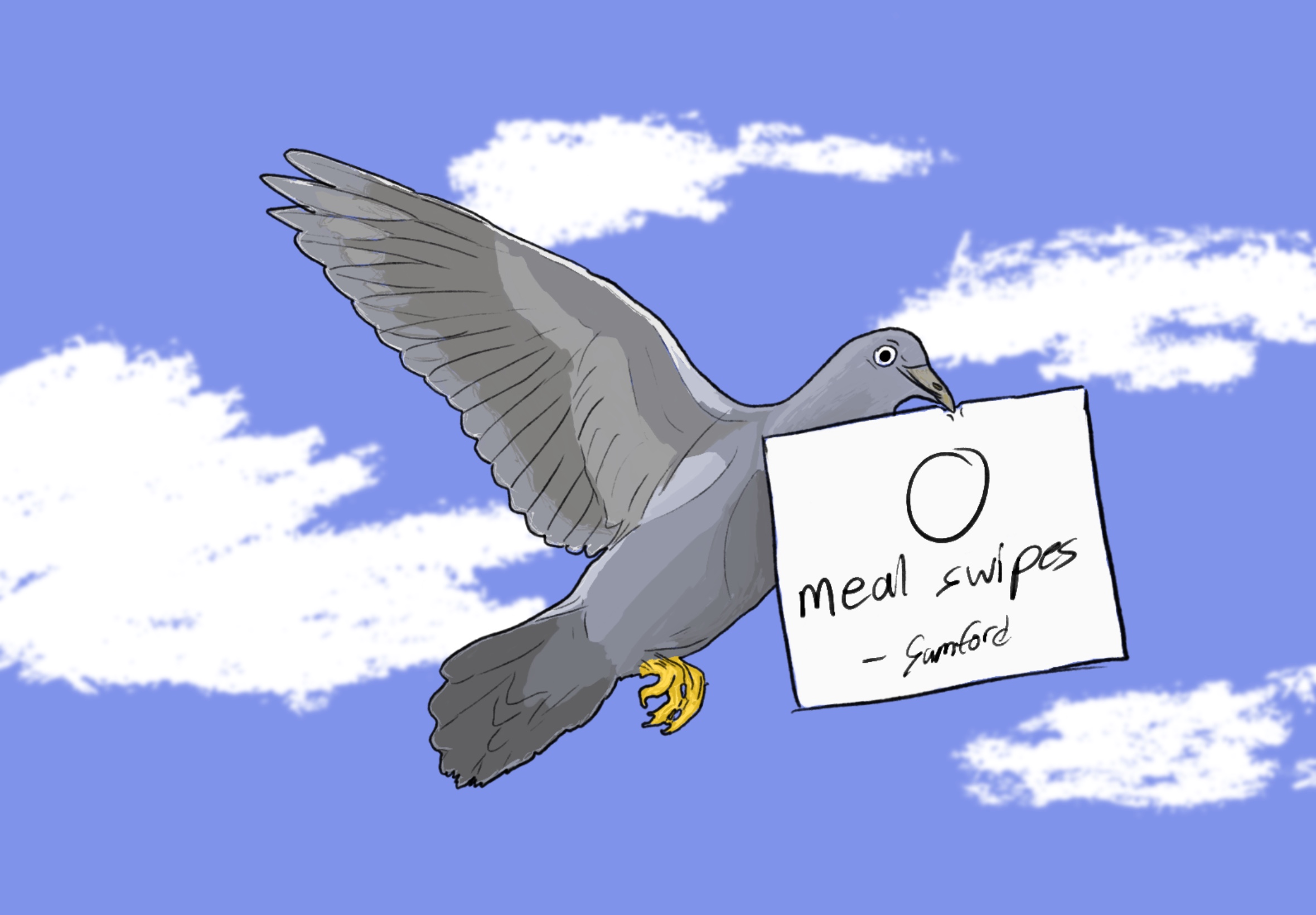 There are also several other uses for these pigeons! Imagine blowing a whistle and a pigeon brings you a slip showing how many meal swipes you have left for the week or brings a letter to your professor explaining your latest absence.