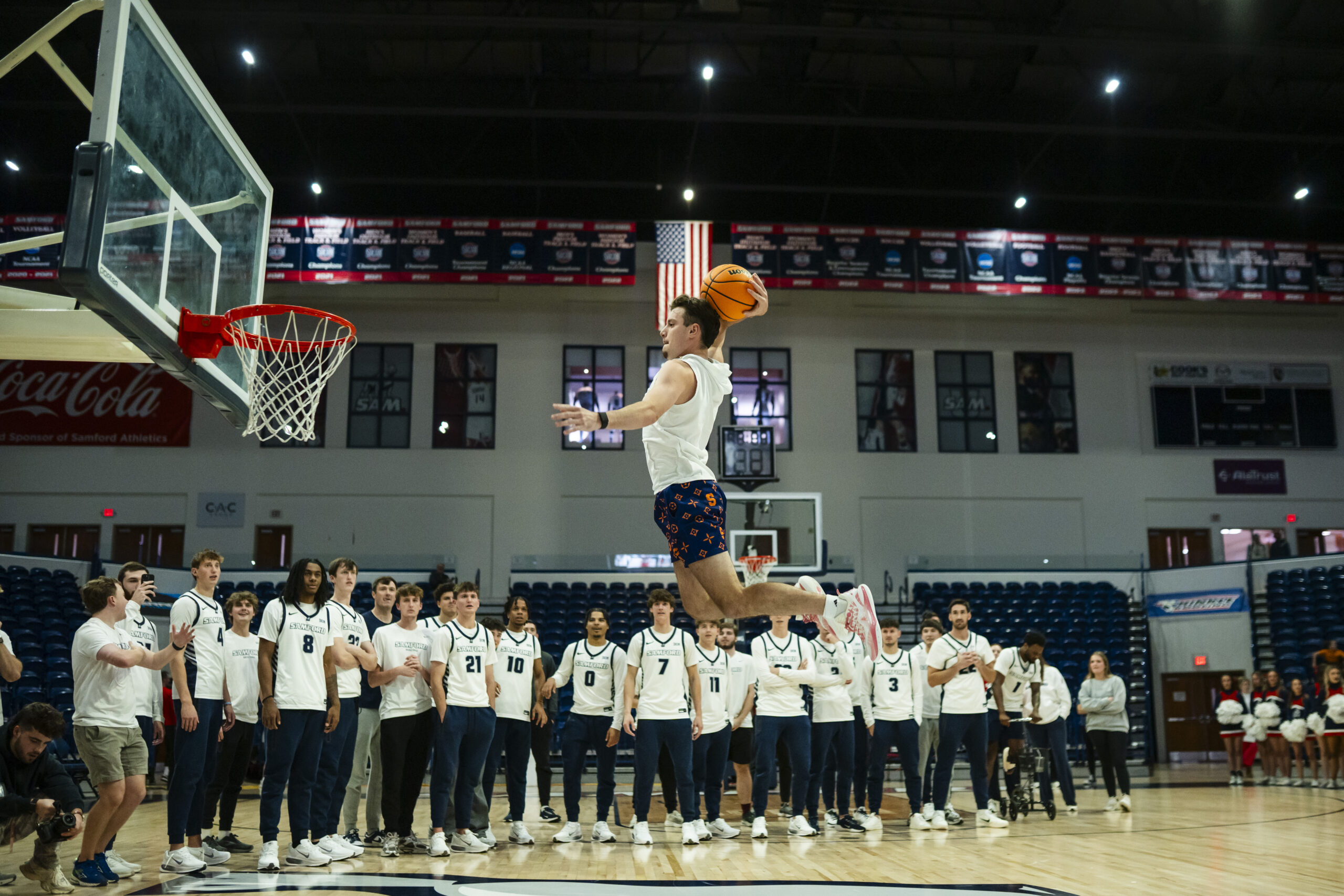 Students from across campus gathered to cheer on participants in a knockout tournament featuring members of GGreek lLife, a basketball skills challenge and a dunk contest, judged by President Beck Taylor and two Birmingham Squadron players. Samford players also autographed posters and spent time engaging with students and families afterward.