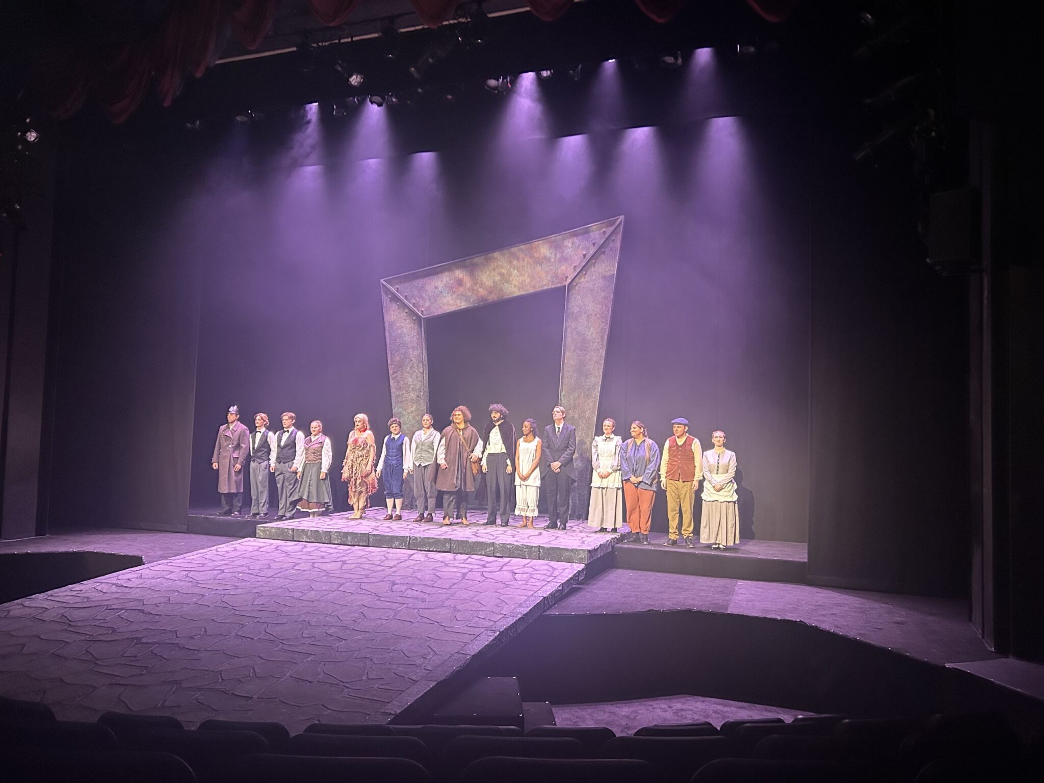 Cast of Frankenstein on stage for bows. (Kate Maze | The Samford Crimson)
